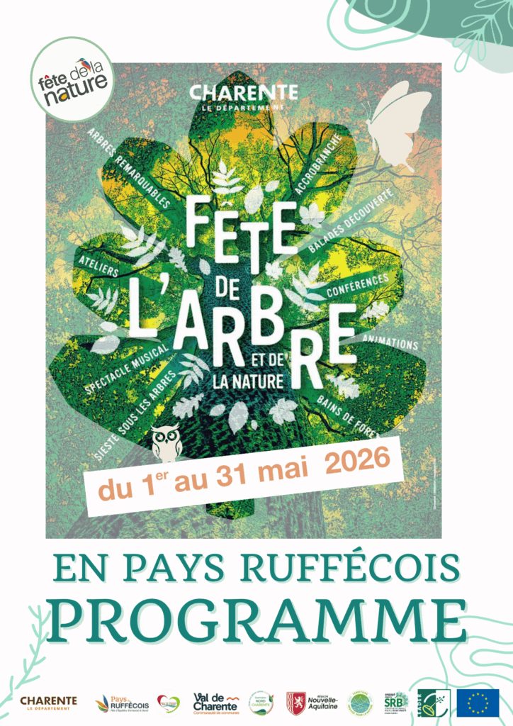 Dans le cadre de la Fête de l’Arbre et de la Nature, portée par le Département de la Charente, le PETR du Pays du Ruffécois, en lien avec ses partenaires, vous propose entre le 2 et le 30 mai 2026 plus de 30 animations ! La Fête de l’Arbre et de la Nature, c’est de nombreuses animations dont vous pourrez profiter, seul, en famille ou entre amis…